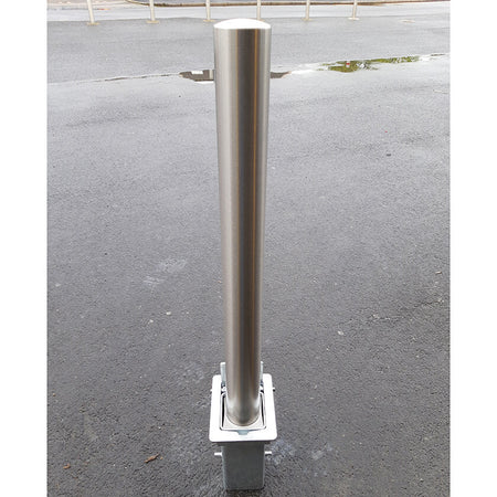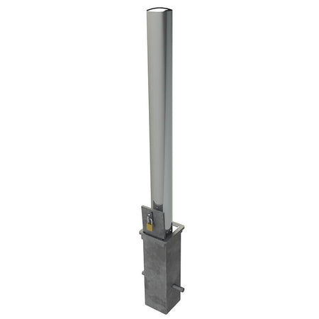 Stainless steel heavy-duty removable bollard lockable by a detachable padlock. Built to provide a long term solution to protect vehicles and property on a domestic driveway application if deep ground excavation is not possible.