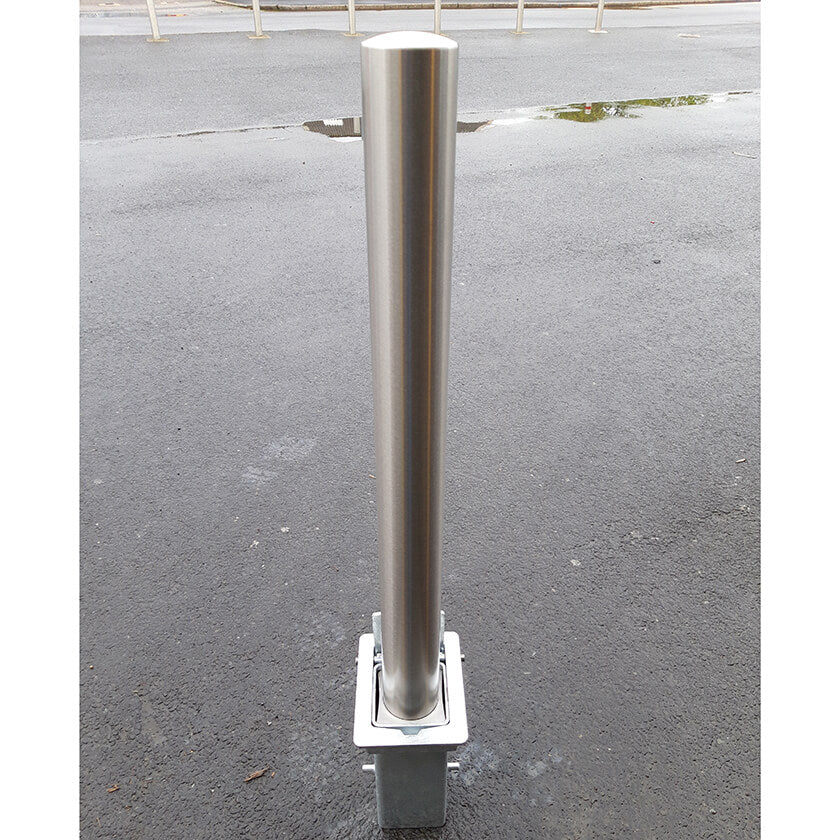 Stainless steel heavy-duty removable bollard lockable by a detachable padlock, built to provide a long-term solution to protect vehicles and property on a domestic driveway application when deep ground excavation is not possible.